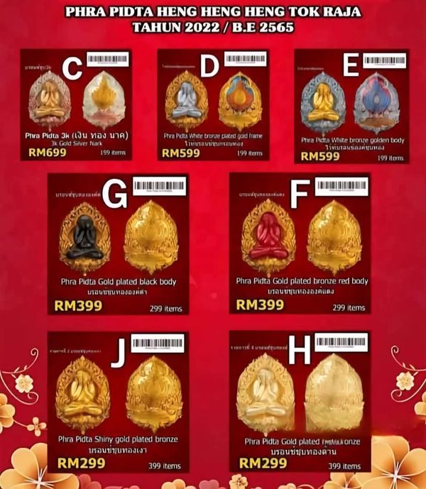 “此次特别推出两款必达佛牌:其一为复古风格,重现督拉惹时期的经典设计;其二则以督拉惹修行所用圣木雕刻制成,更具灵性与纪念价值。此外,5吋与9吋督拉惹圣像、第2代高僧圣像,以及招财女神圣像等结缘品,均附有正品证书。”