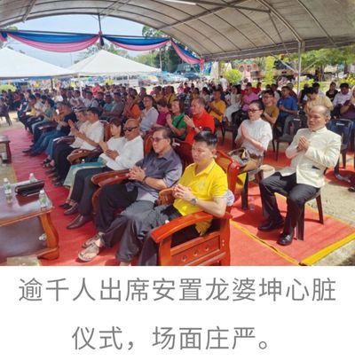 佛庙日前举办三大盛会,场面热闹非常,逾千人出席见证督拉惹(龙婆坤)大雕像安置心脏仪式。